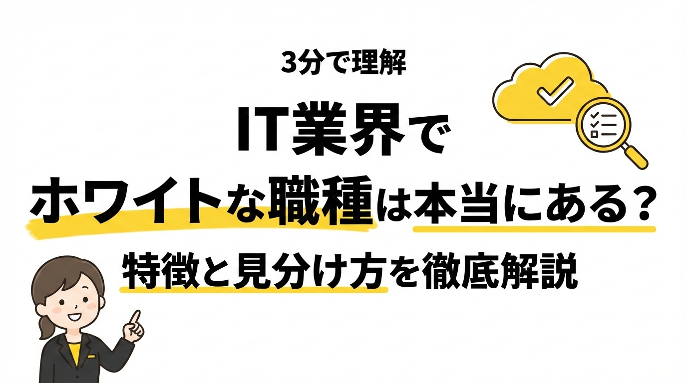 IT業界でホワイトな職種を探すうえで大切なのは、名前ではなく中身を見ることです。残業、休み、評価、仕事の進め方を具体的に確認してください。